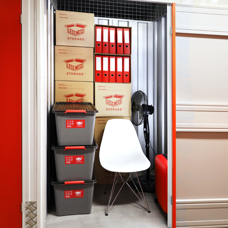 Less Mess Storage offers modern self storage units, secured with advanced protection systems, where optimal storage conditions are maintained year-round. In our units you can safely store documents, office equipment, marketing materials, and even your online shop inventory. CCTV monitoring, alarms and individual access codes ensure the security of your property, while wide corridors, large lifts and convenient parking make your visits comfortable.